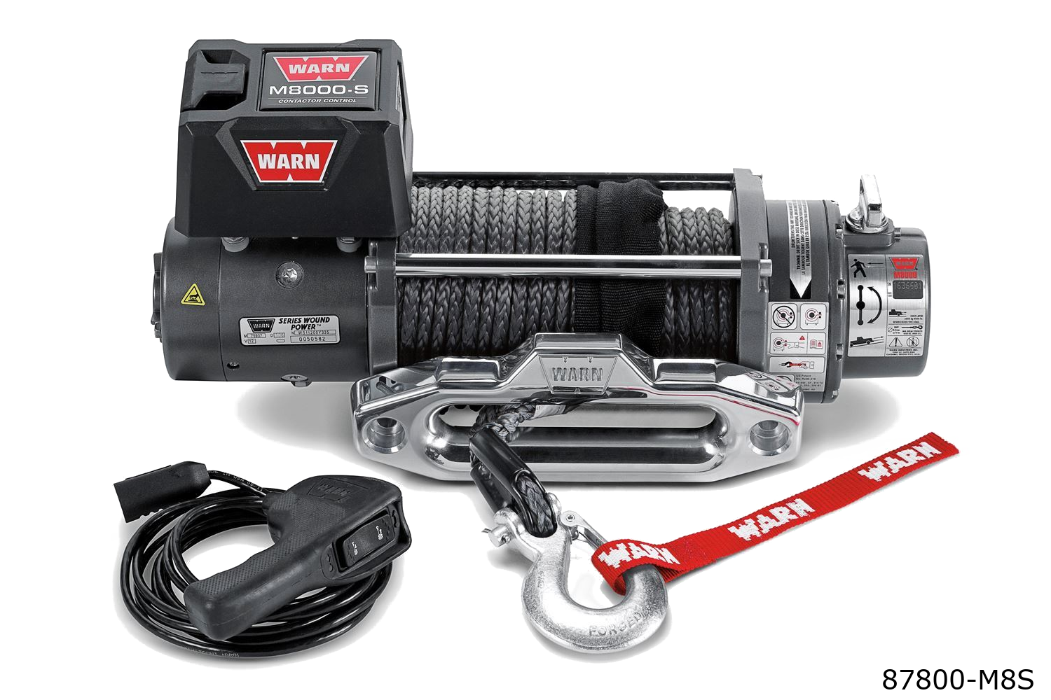 - Available with WARN Spydura synthetic rope with matte aluminum hawse fairlead